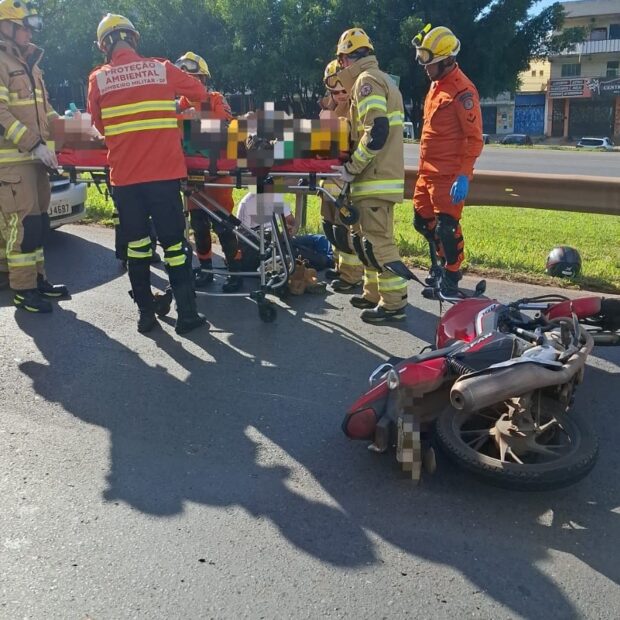 Segundo o Corpo de Bombeiros Militar do Distrito Federal (CBMDF), a equipe foi chamada às 7h58 e enviou três viaturas para o local. No acidente, estavam uma moto Honda CG 160 vermelha, um carro Chevrolet Classic prata e um caminhão Ford Cargo branco.