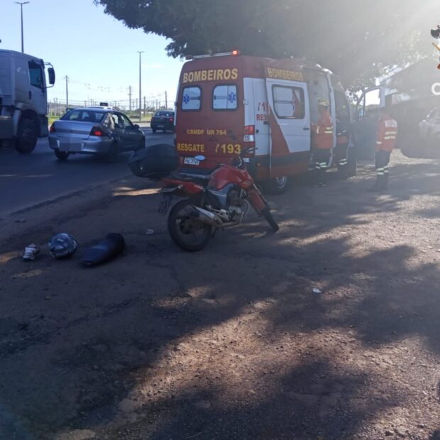 Acidente entre moto e carro mobiliza bombeiros em Ceilândia