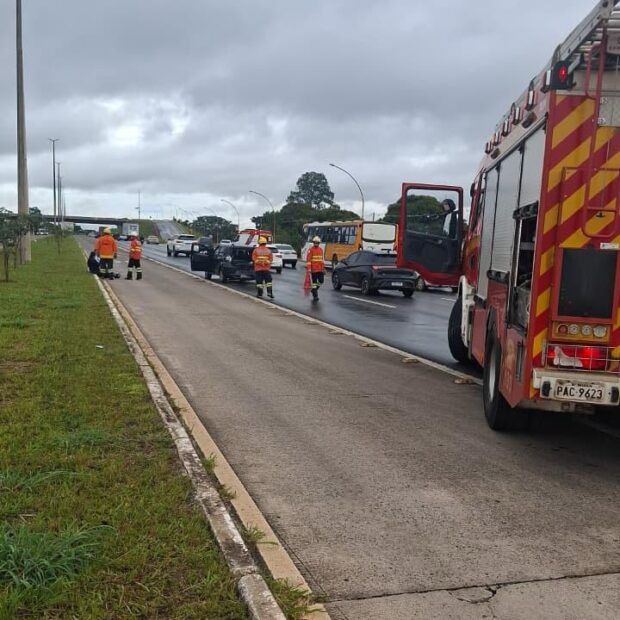 O Corpo de Bombeiros do Distrito Federal foi chamado às 7h19 da manhã desta quarta-feira (25/02/2026) para atender a um acidente com três veículos. Duas equipes de resgate foram enviadas ao local.