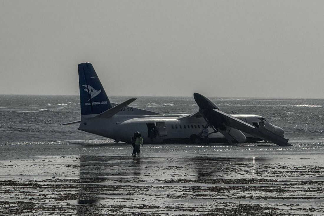 Um avião transportando 55 passageiros realizou um pouso de emergência em uma praia na Somália na terça-feira (10), depois de sair da pista do Aeroporto Internacional Aden Adde.