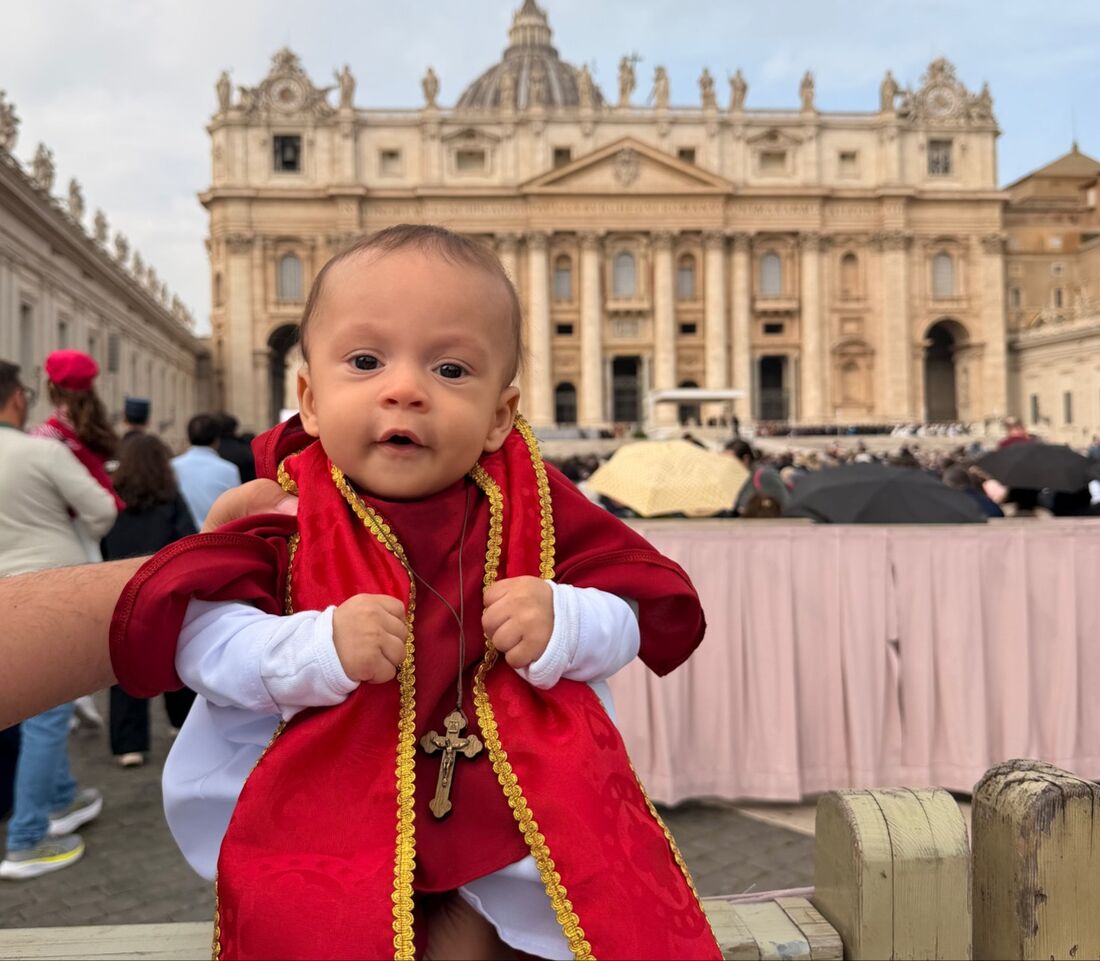 Um bebê brasileiro recebeu uma bênção especial do Papa Leão XIV no Vaticano, usando uma roupa feita em homenagem ao pontífice. O momento, registrado em vídeo, se espalhou rapidamente nas redes sociais.