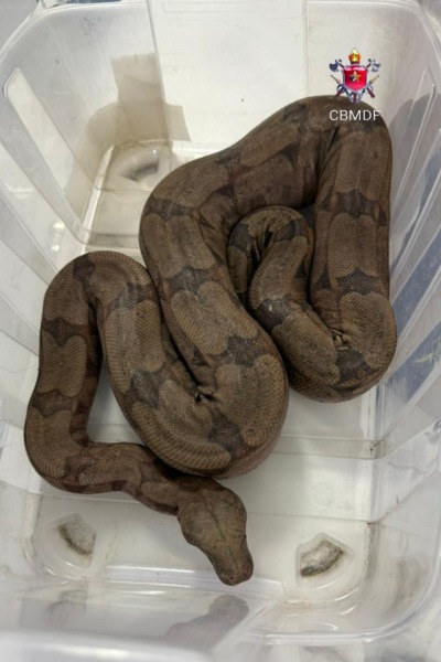 Depois, os bombeiros do 13º Grupamento, que fica no Guará, buscaram a cobra na unidade e a levaram ao Hospital e Centro de Reabilitação da Fauna Silvestre do Distrito Federal.