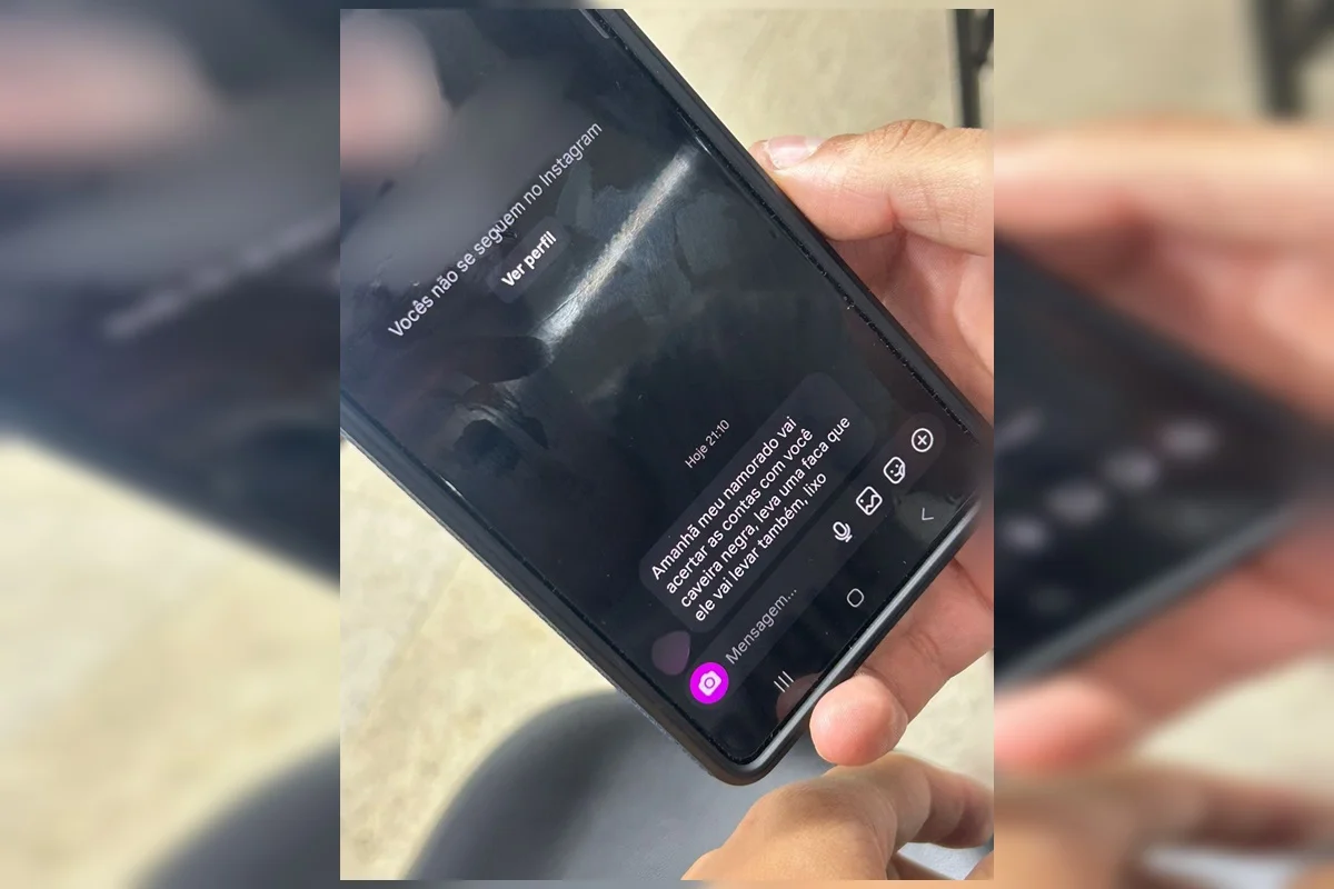 Um dos alunos deixou a sala para chamar um segurança e registrar a denúncia. Minutos depois, a agressora enviou uma mensagem ofensiva a este aluno, chamando-o de “lixo” e dizendo que o namorado resolveria a situação no dia seguinte, sugerindo até que ele levasse uma faca, pois o namorado também estaria armado.
