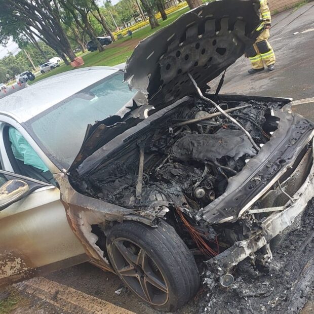 Carro pega fogo e fecha saída do Parque da Cidade para a W5 Sul