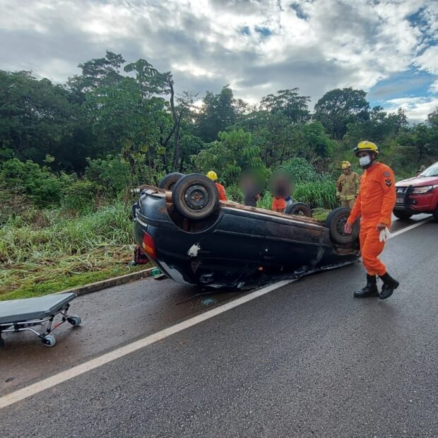 Carro vira na BR-080 e motorista é levado ao hospital em Brazlândia