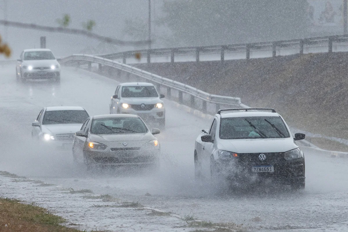 Na manhã desta segunda-feira (17/11), após um período de intenso calor, o Distrito Federal foi surpreendido por uma chuva acompanhada de granizo. A tempestade, que também trouxe ventos fortes, teve início por volta das 11h15 e, conforme relatos, durou menos de uma hora.