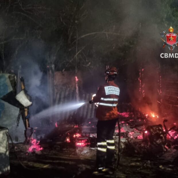 Fogo consome barraco de madeira no Distrito Federal e bombeiros agem rápido