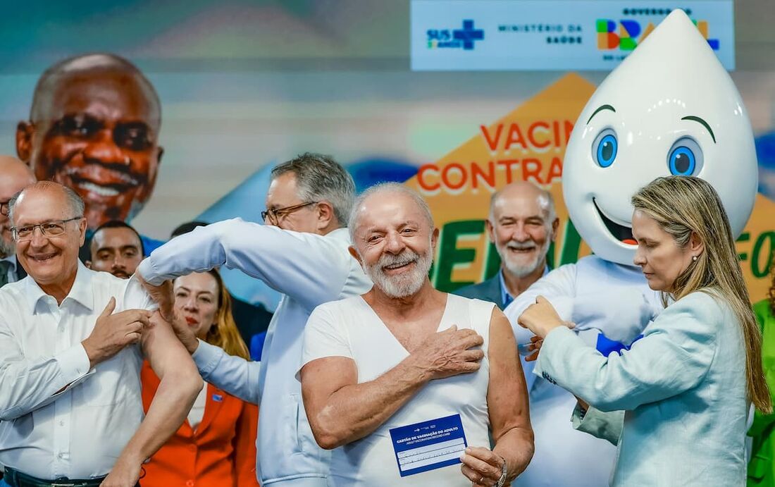 O presidente Luiz Inácio Lula da Silva (PT) foi a primeira pessoa a ser vacinada na campanha nacional do governo contra a gripe. A vacinação foi realizada por uma profissional de saúde durante um compromisso oficial em Anápolis (GO), na quinta-feira, 26.
