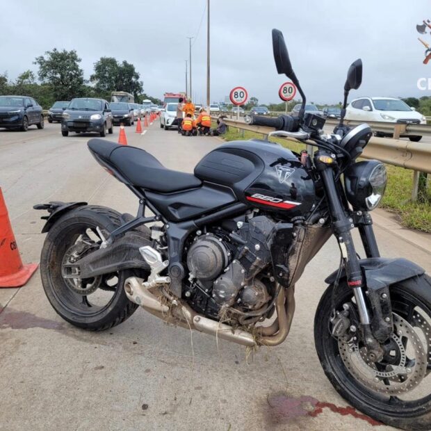 Ao chegarem, encontraram uma colisão entre uma motocicleta Triumph preta e um Toyota Yaris branco. O motociclista recebeu atendimento inicial com o protocolo de trauma. Ele estava consciente, alerta, apresentava arranhões pelo corpo e foi levado a um hospital para avaliação médica.