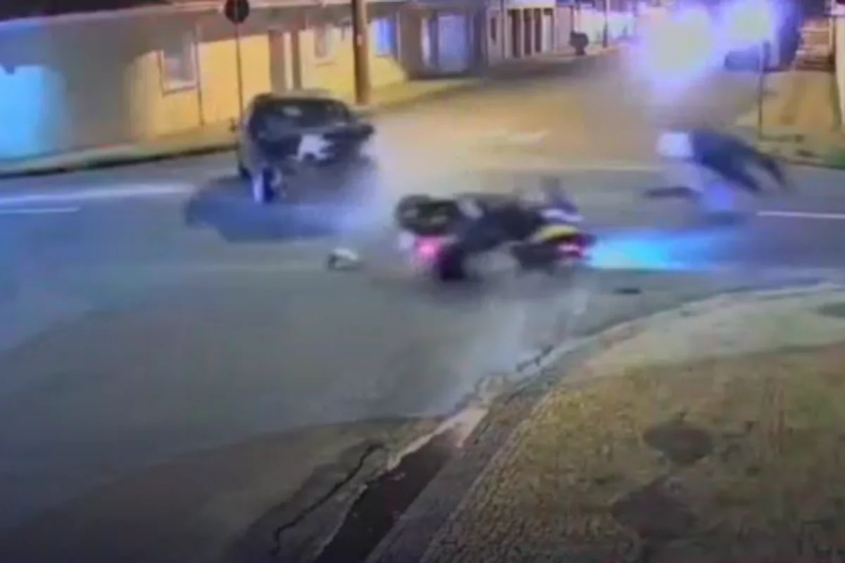 Imagens capturadas por câmeras de segurança mostram motociclistas da guarda municipal cruzando o cruzamento quando uma delas é atingida por um veículo modelo Vectra. O motociclista foi lançado a aproximadamente 10 metros do local da colisão, enquanto o motorista não sofreu ferimentos.