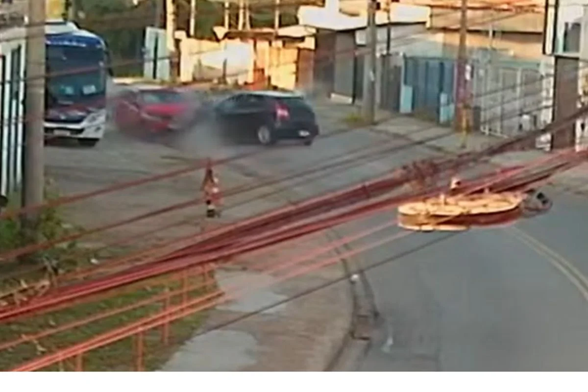 As imagens captadas por uma câmera de segurança mostram o momento em que o veículo conduzido pelo homem alcoolizado trafega de forma descontrolada, em zigue-zague, segundos antes do impacto. No vídeo, é possível observar os ocupantes com os braços para fora da janela, jogando um líquido na via.