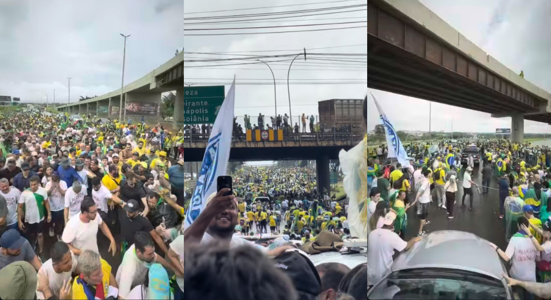 Manifestantes em apoio a Jair Bolsonaro se reuniram em Brasília neste domingo para o encerramento da caminhada promovida pelo deputado Nikolas Ferreira (PL-MG) pedindo a libertação do ex-presidente, que está detido na Penitenciária da Papuda após ser condenado por tentativa de golpe de Estado.