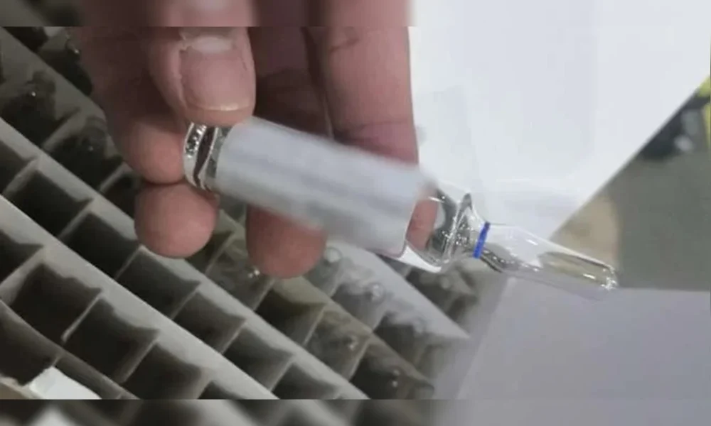 Um exame inicial em uma garrafa de vodca do mesmo lote e marca da bebida ingerida por um homem internado com suspeita de intoxicação por metanol...