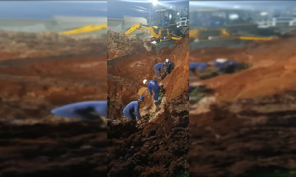 Um cano da Companhia de Saneamento Ambiental do Distrito Federal (Caesb) se rompeu, formando um grande buraco em uma via próxima à Avenida da Misericórdia, em...
