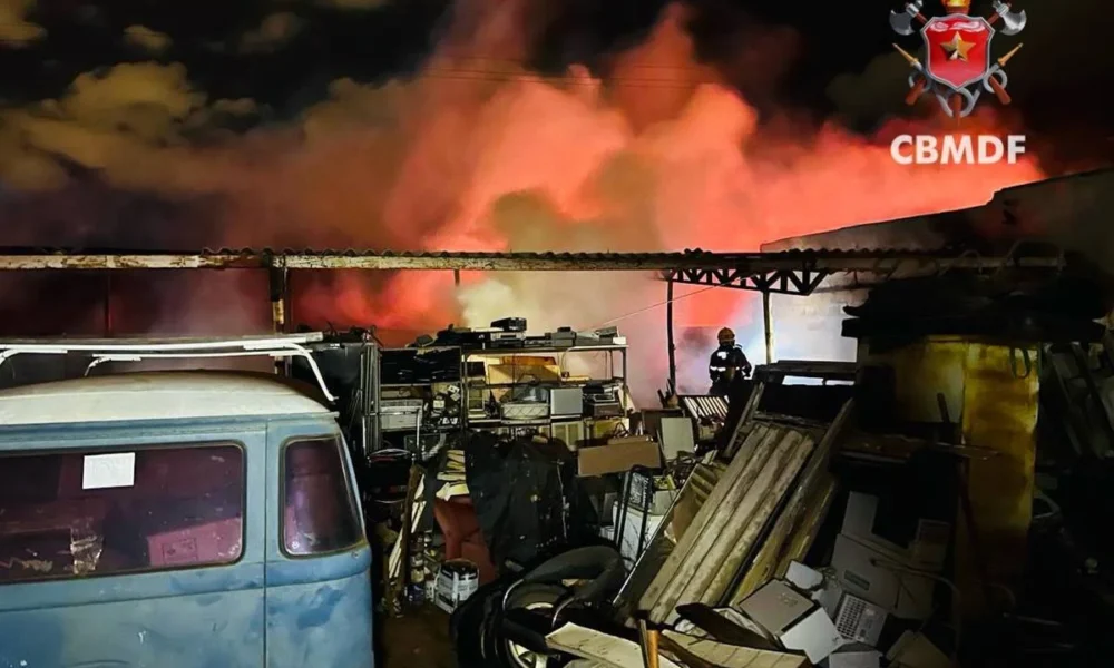 Um grande incêndio atingiu um depósito de veículos e materiais diversos na região da Ponte Alta Norte, no Gama (DF), durante a noite de sábado (22/11)....
