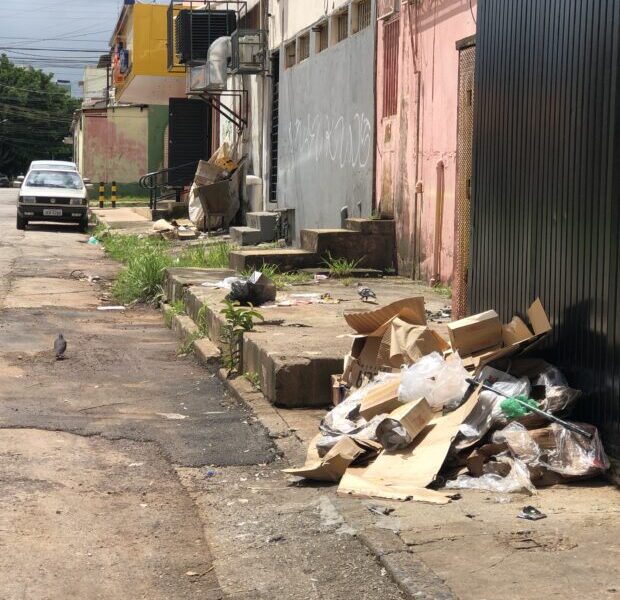 A rua na quadra 24 do Setor Leste do Gama enfrenta diversos problemas, incluindo falta de iluminação pública, descarte incorreto de lixo, presença de pombos, baratas...