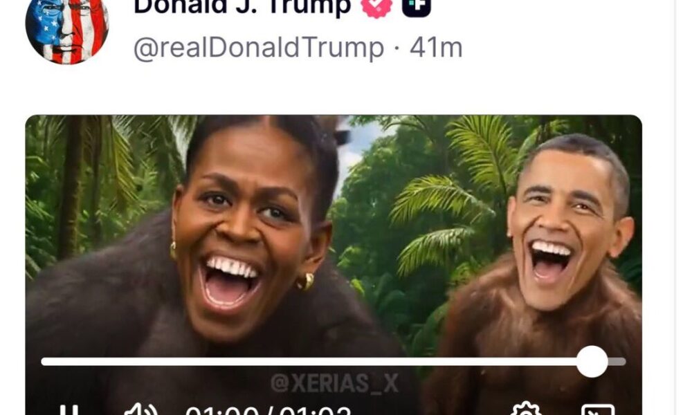 A postagem de uma imagem do ex-presidente Barack Obama e sua esposa, Michelle, retratados como macacos em uma publicação feita nas redes sociais do presidente Donald...
