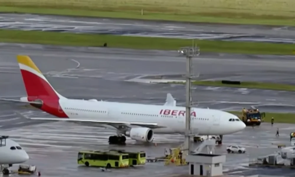 Um avião da companhia aérea Iberia precisou retornar ao Aeroporto de Guarulhos, na região metropolitana de São Paulo, cerca de 30 minutos após a decolagem, na...