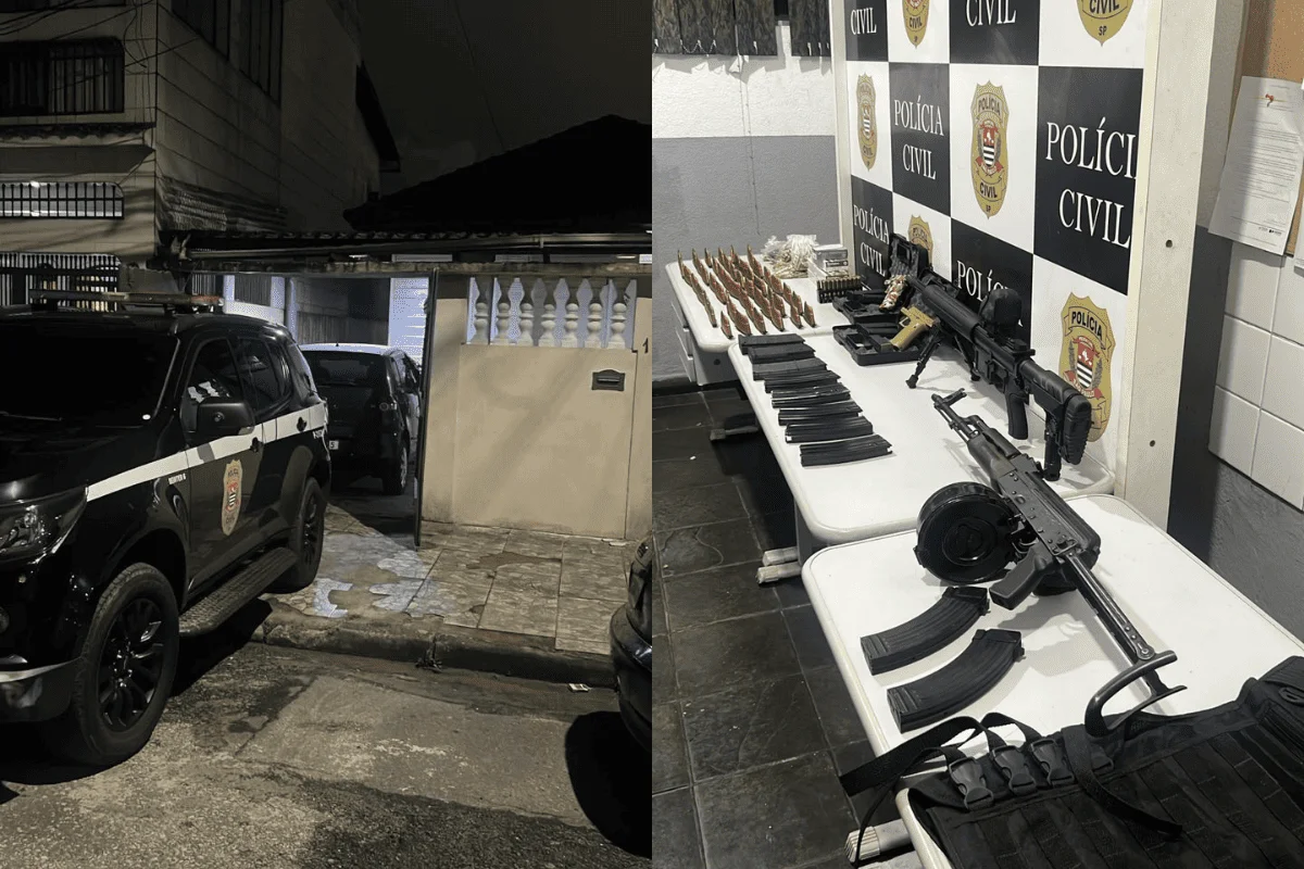 Conforme informou a Polícia Civil, a operação integra um esforço contínuo para combater o crime organizado na região da Baixada Santista. Após um mês de vigilância, os agentes identificaram o arsenal guardado em uma casa no bairro Vila Cunhambebe, na Rua Alagoas.