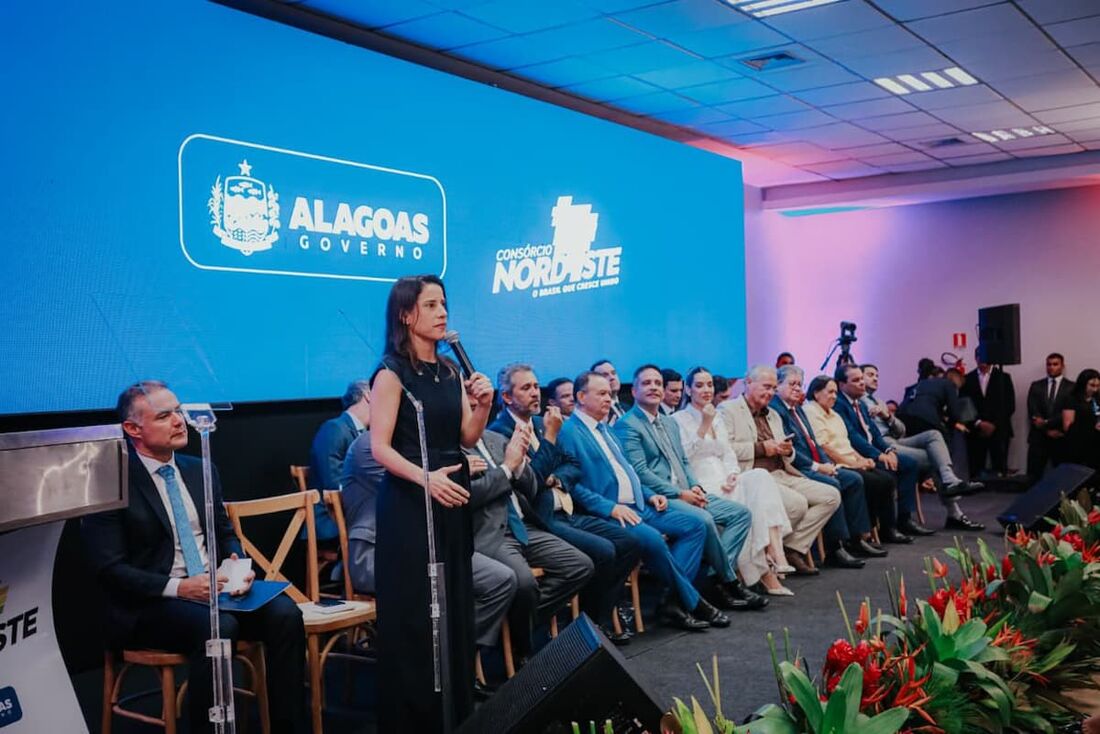 Raquel Lyra, governadora de Pernambuco, destacou o Nordeste como uma região promissora para investimentos futuros durante um evento em Maceió, na posse do novo presidente do Consórcio Nordeste, Paulo Dantas, governador de Alagoas.