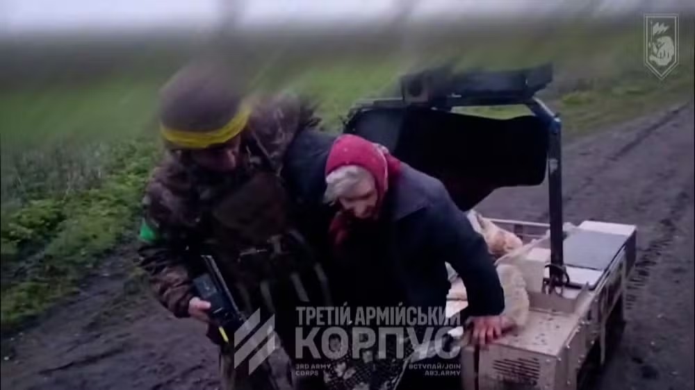 De acordo com o Terceiro Corpo do Exército, soldados da unidade de sistemas terrestres não tripulados Cerberus realizavam uma missão de reconhecimento quando avistaram a idosa atravessando um terreno danificado por crateras de projéteis. Em um momento, ela chegou a cair, o que fez com que os militares decidissem pela evacuação imediata.